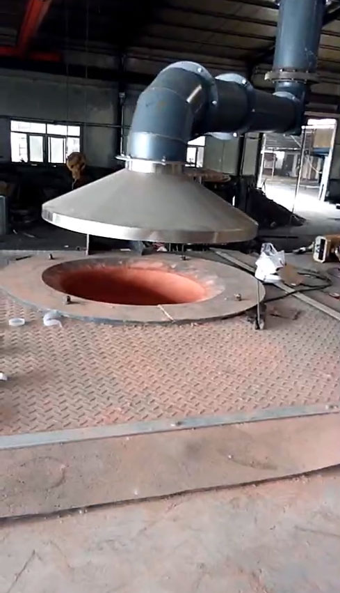 電爐除塵器裝置系統(tǒng)為:將來自工業(yè)硅生產(chǎn)電爐的煙氣,在離心式主風機的抽吸作用下,煙氣由半封閉式電爐內(nèi)引出,沿著煙道首先進入旋風除塵器。把粗粒、火星分離出來,使其沉降于灰斗至卸料器排出。在有旋風除塵器的出口排出,超細粉塵及含塵氣體進入一個熱交換器,風冷降低煙氣溫度,然后其它塵粒隨氣流上升進入布袋除塵器各個袋室。經(jīng)濾袋過濾后,粉塵被阻留在濾袋外面,凈化后的氣體由濾袋進入箱體,再通過袋口和上箱體(凈氣室)出風口進入離心式主風機在排入煙囪至大氣?;叶分械姆蹓m定時或連續(xù)由卸灰系統(tǒng)排出。